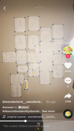Around 2008/2009: With 6yo they experiences a traumatic Event, they refer to the traumatized person as "her". (TikTok 9/5/21)2016: they entered the mental health system.3/11/20: creation of the first Reddit, u/wonderlandsystem.9/17/20: creation of a second Reddit, u/Wonder-land-system.8/22/21: Possible creation of their last account.9/13/21: States that no alters are French.12/7/21: first mention of the brother they live with.January 1st 2022: Dani tells us there are over 150 altersEarly January 2022: Their content gains Attention on Tiktok.1/6/22: They change their profile picture on TikTok